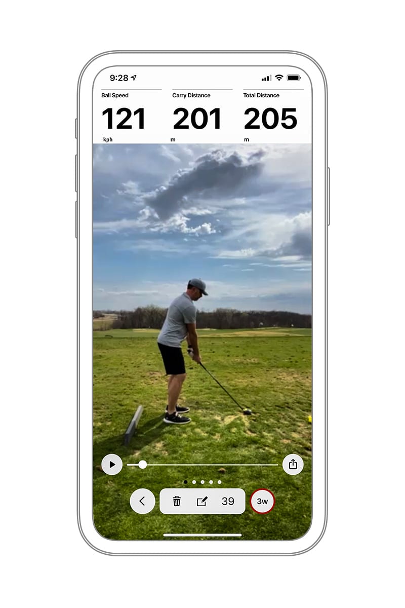 Trabaja para mejorar la consistencia de tus golpes mediante el seguimiento de métricas como la velocidad de la cabeza del palo, la velocidad de la bola, el giro, el ángulo de lanzamiento, la dirección de lanzamiento, la calidad del impacto y mucho más.